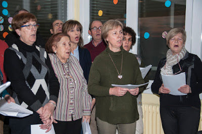 Y en medio de estas fiestas, en una tarde que invitaba más a quedarse en casa calenticos, tuvimos una muy agradable visita: el Coro de Barasoain nos hizo pasar un estupendo rato cantando los villancicos de siempre, los que todos conocemos y hemos cantado tantas veces. Así que nos animamos a cantar con ellos.